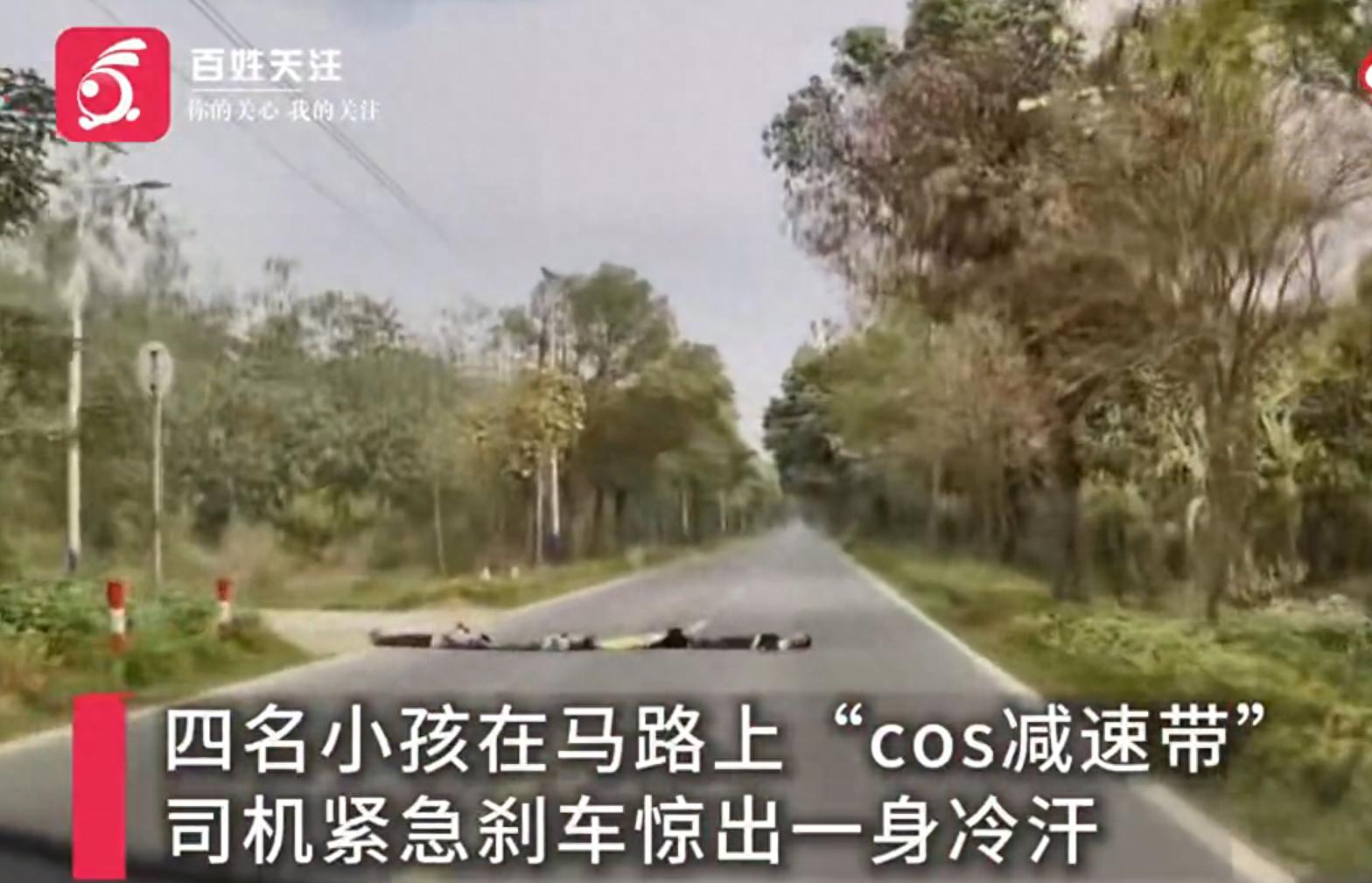 据百姓关注消息,3月8日,广东清远四名儿童在马路上排成一列躺地,一辆汽车经过时紧急刹车,所幸未酿成事故。