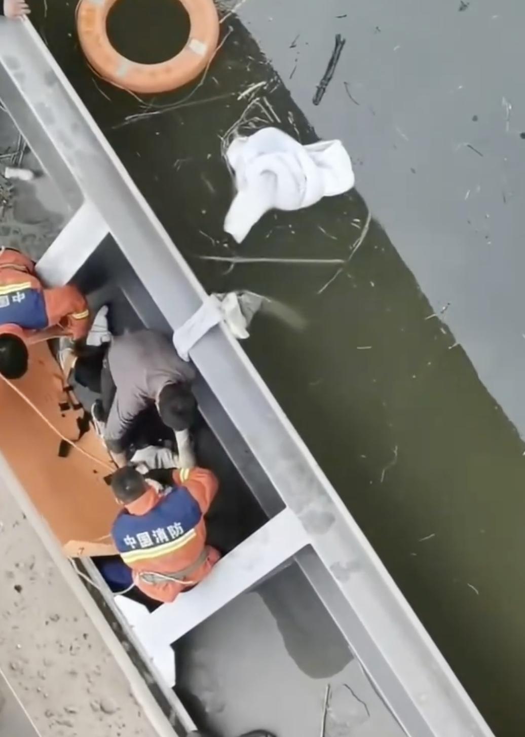 “我朋友会游泳,就也下去帮忙救人,那个女子被黑衣大哥拉到水闸边,已经失去意识,但还有呼吸,经过心肺复苏等急救措施,她苏醒过来,万幸没有大碍。之后消防人员把她送到了桥上,救护车带走送医了。”谢先生说。