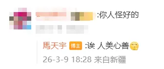 马天宇在评论区自夸“人美心善”