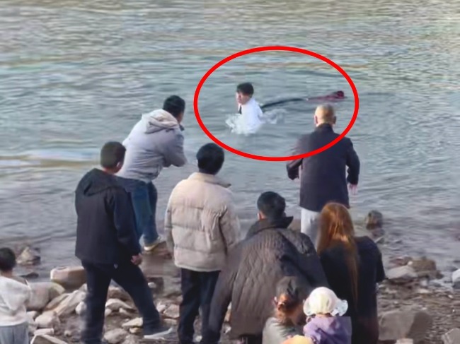 黄河边散步遇到有人落水