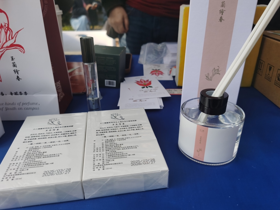 “这款香氛有前、中、后三调香味。前调是青草、白玉兰,中调是铃兰、茉莉、依兰,后调是檀香、愈创木、雪松、麝香。”华东理工大学的研究生们最近在小红书上开设了账号,推广“玉兰绘春”。