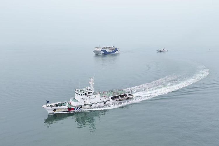 同时,重点对过往商渔船进行点验核查,通过甚高频喊话、现场提醒等方式,强化船舶值班值守要求,督促商船合理控制航速、保持安全会遇距离,提醒渔船严禁侵占航道作业。巡航期间,巡航编队还对客运船舶进行伴随护航。