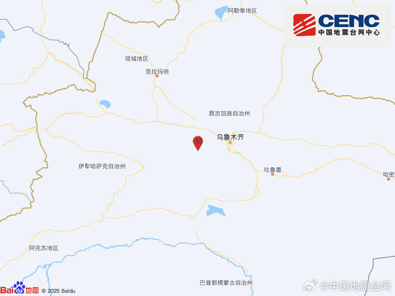 新疆昌吉州呼图壁县发生3.8级地震,震源深度19千米