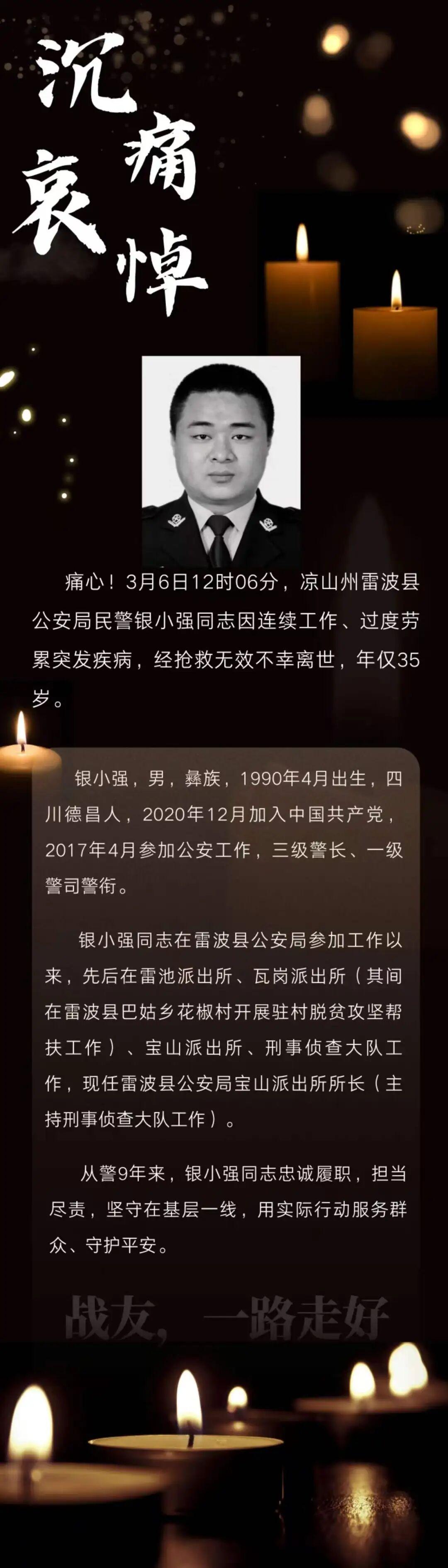 痛心!凉山公安民警银小强突发疾病离世,年仅35岁!