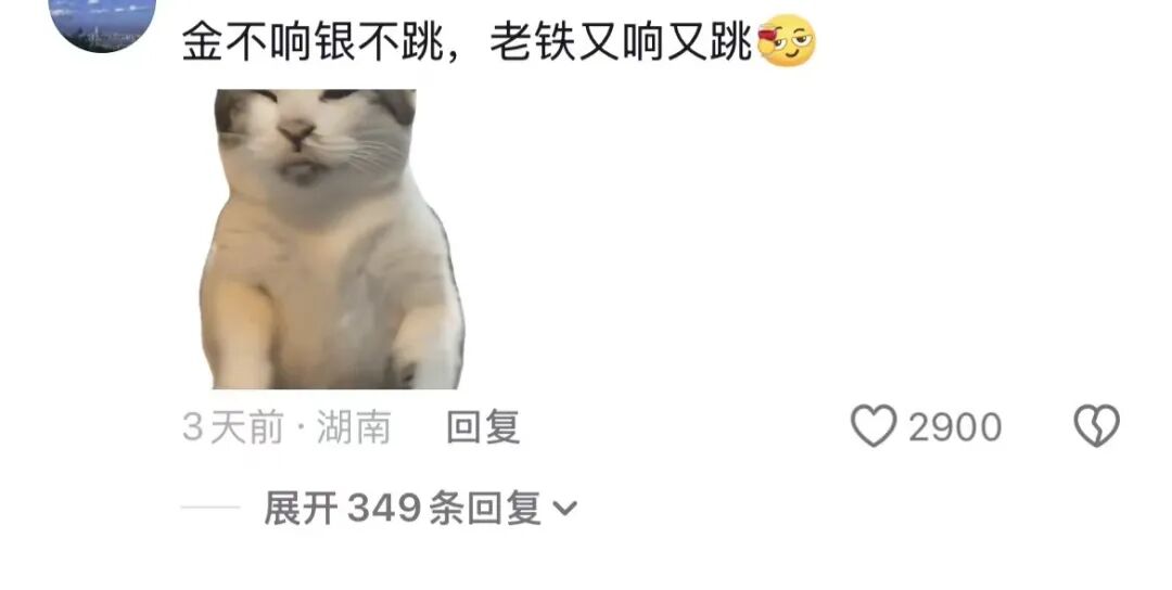 3月9日,浙江一女子收到老公送的一个大金手镯作为妇女节礼物,她随手扔到地上测试,没想到镯子直接高高弹起,并且伴随着清脆响声。她发视频询问网友是否正常,引发调侃:“金不响银不跳,老铁又响又跳——姐妹,这是‘铁’了心和你在一起啊!”