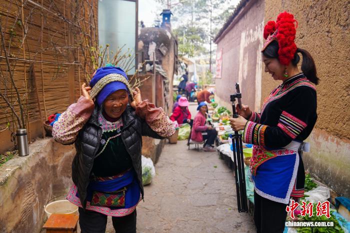 乐居村是云南省昆明市西山区彝族、白族、汉族等多民族聚居的传统村落,距今已有600多年历史。图为1月11日,家乡推荐官期丽拍下乐居村的日常生活。 中新社记者刘冉阳摄
