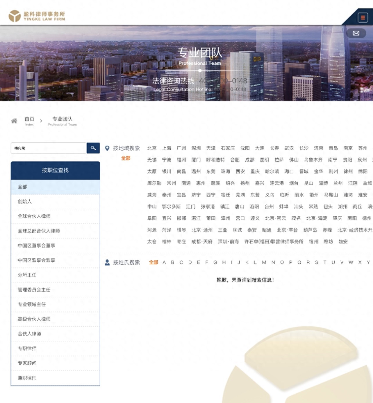 截至目前,盈科律师事务所网站内,仍保留有梅向荣作为律所主任的新年致辞。不过,在团队人员中已检索不到梅向荣的信息。