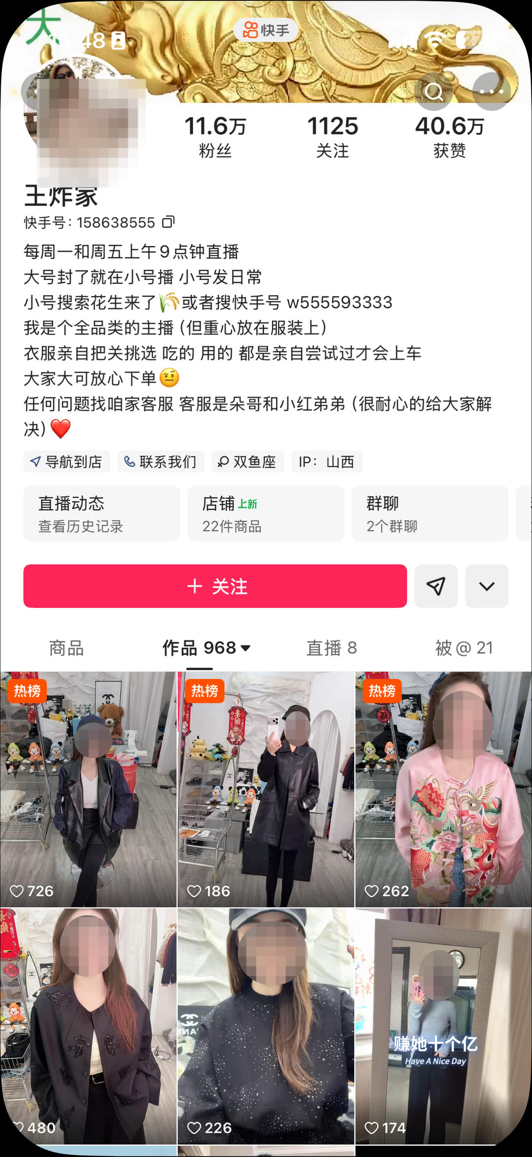 ▲“王炸姐”账号主页信息