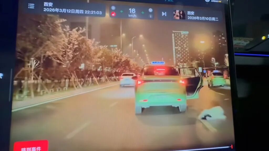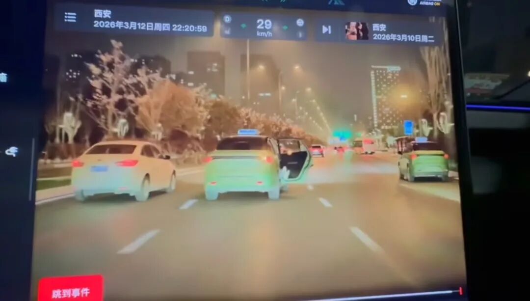 3月12日晚,有网友在社交平台发布一段车载监控视频称,当晚10点20分许,西安一出租车正行驶时,有人疑似从车上跳了下来。