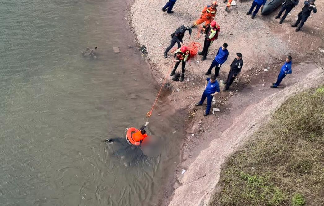 就在民辅警持续安抚、寻找救援时机的瞬间,意外突然发生:男子猛地挣脱劝阻,纵身一跃,“扑通”一声坠入冰冷的水库,身影瞬间被深水吞没。