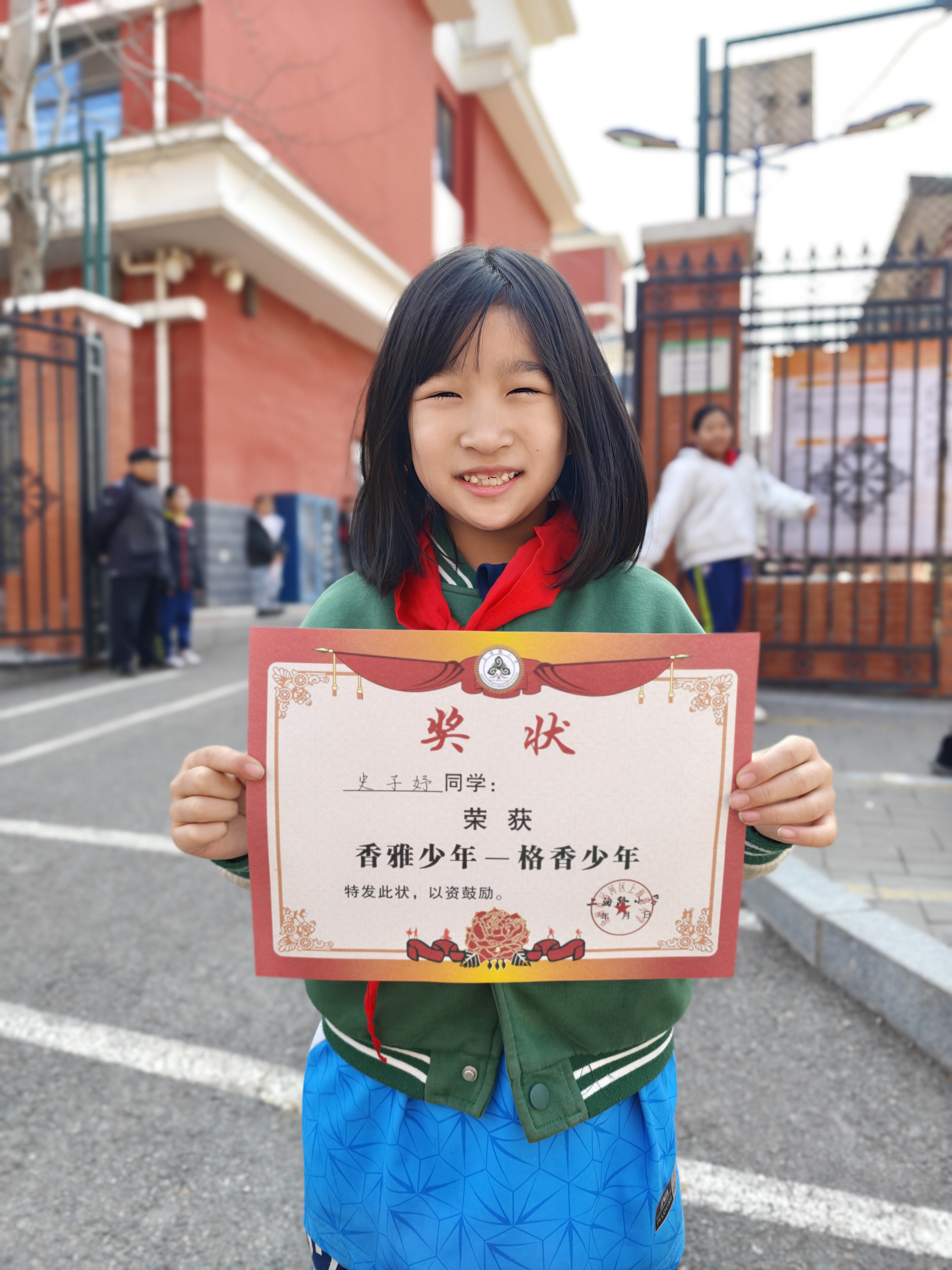学校给史子妤同学颁发“香雅少年——格香少年”荣誉称号。杨斯供图