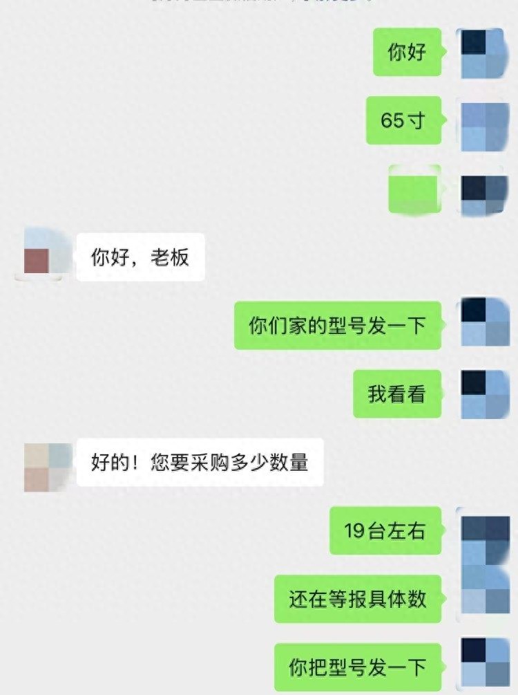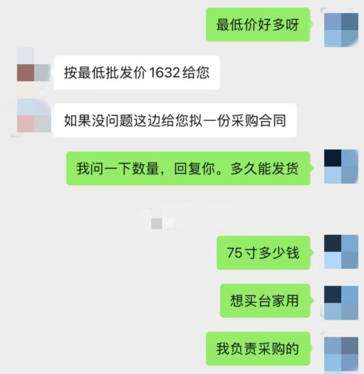 据了解,吴女士经营着一家民宿,需要集中采购一批新电视机。今年1月,在某网络购物平台,她看中了一款65寸的品牌电视。就在准备下单时,商家向她发来了私聊邀请。