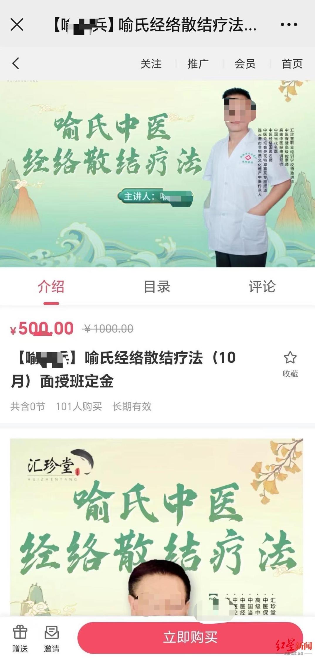 2023年10月,喻某兵曾向一位徒弟介绍:“五万块钱学费,经络散结疗法手法技术,如果五天内到我店里学徒,三万。”