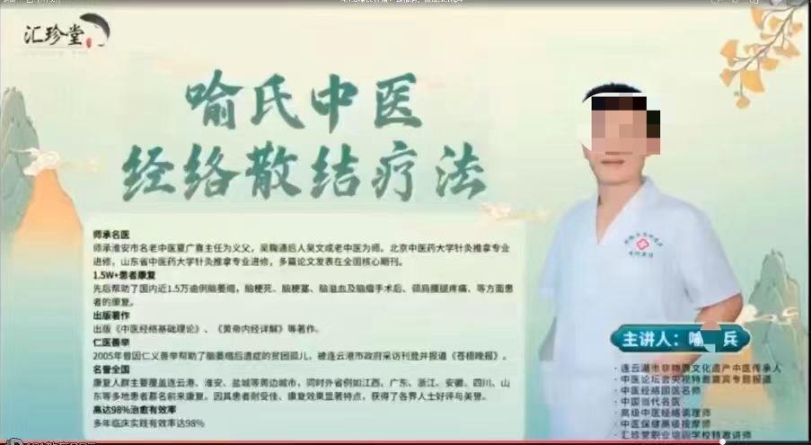 徒弟们回忆,通过汇珍堂,可以下单购买喻某兵网课,也就是喻某兵进行直播授课。直播画面显示,授课时,喻某兵、汇珍堂工作人员均参与其中。网课费用为200元,收款方为汇珍堂教育。