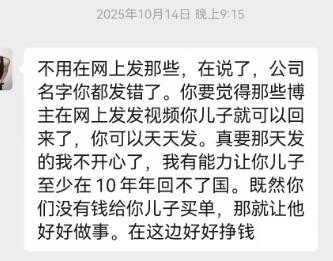 郑女士说,控制姚富军的人威胁他们,如果不拿钱,就让姚富军10年回不了国,甚至让他们永远联系不到姚富军。他们全家现在非常着急,希望孩子能早日获得自由。