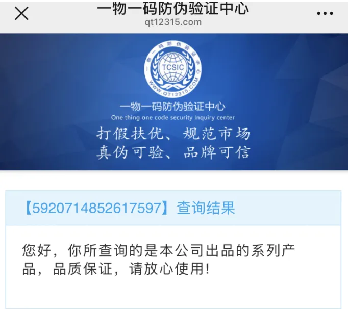 实际上,这个名叫“一物一码防伪验证中心”的平台,既不是官方机构,也不是品牌自建,而是一家第三方平台制作的,说白了只要花钱,这类防伪码完全可以批量定制。