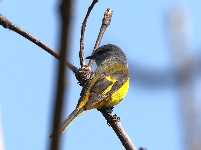 发现灰喉山椒鸟的参赛队长贾海洋告诉大皖新闻记者,他们上午在袁家山观鸟时,发现一只黄色雌性灰喉山椒鸟正在樟树林里觅食,赶紧按下快门,拍到了多组照片。