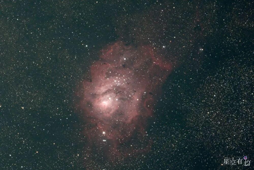 2025年4月1日晚,在河北省承德市兴隆县拍摄的“梅西耶天体”中的M8——礁湖星云。(刘仲利 摄)