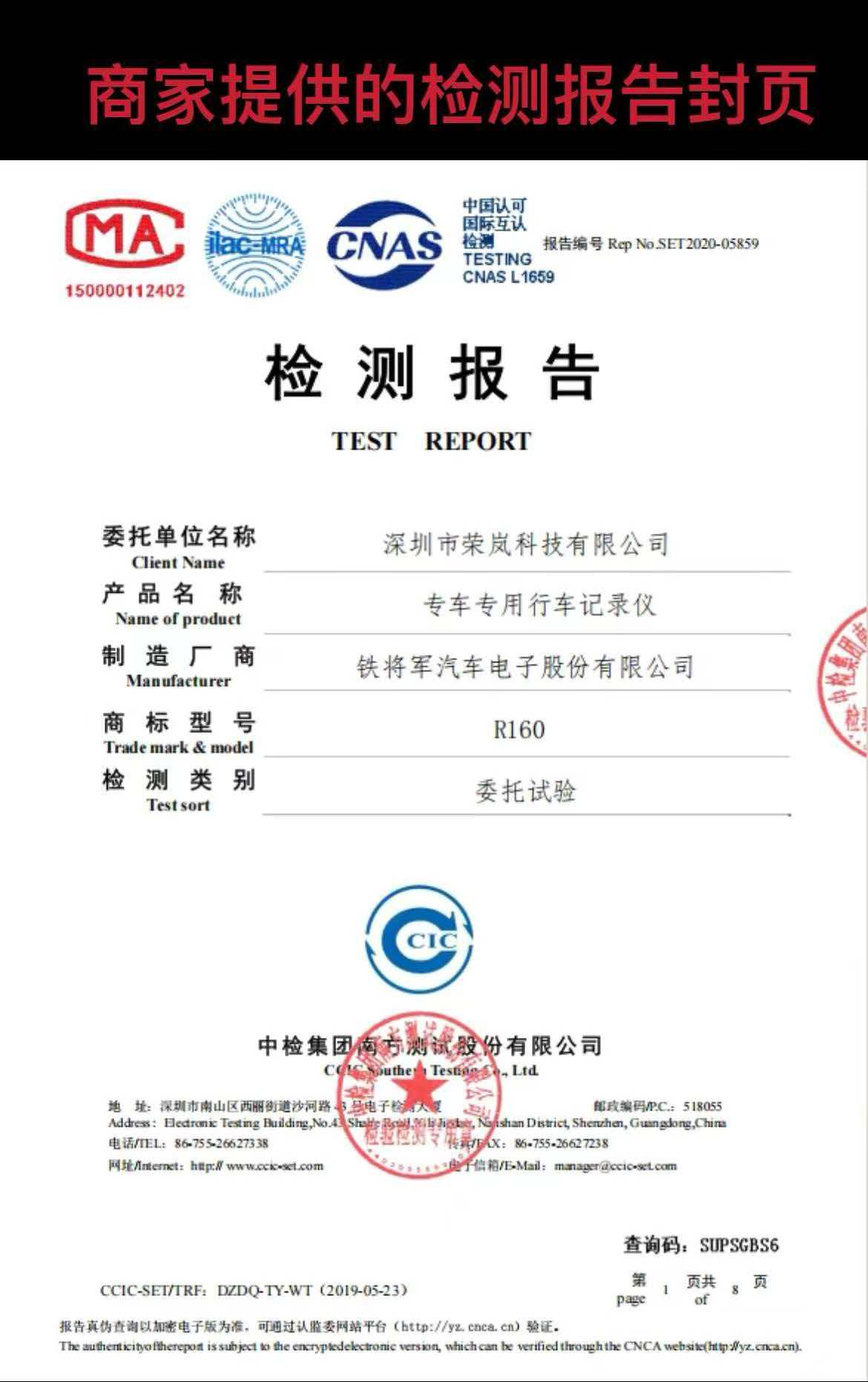 网购平台购买行车记录仪,商家提供产品检测报告疑为P图