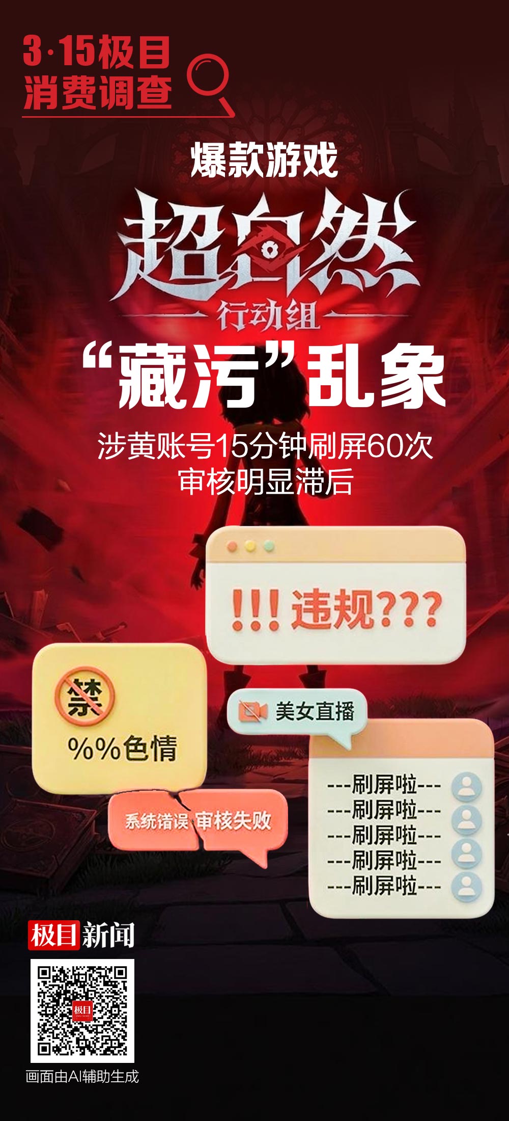近日,有网友向极目新闻反映,热门游戏《超自然行动组》里出现很多涉黄账号,这些账号在游戏的公共聊天区狂发诱导信息,内容露骨,且屡禁不止。更让人放心不下的是,玩家中不少系未成年人,不良内容引发家长担忧。