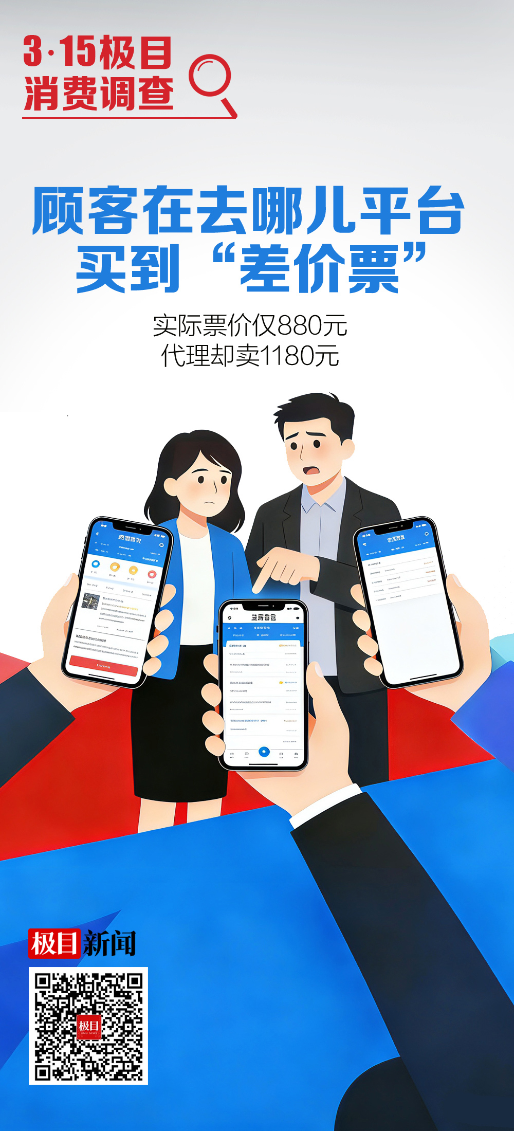 3月10日下午4时,“去哪儿”客服工作人员再次联系极目新闻记者表示,经过核实,航空公司销售的机票票面价格是880元,代理最终以1180元的价格卖给了刘女士,这之间确实有300元差价,如果发票没有报销,可以协助刘女士退差价。因为刘女士是在2023年购的票,超过一年的订单他们无法直接联系代理,所以现在暂时没有找到是哪家代理出的票。目前,他还暂时无法判定代理的此种行为是否违规。