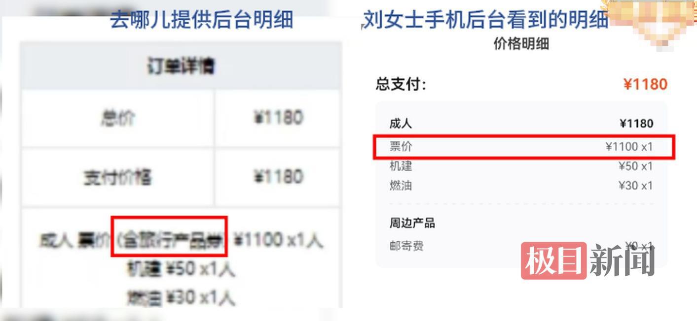 3月14日,“去哪儿”相关工作人员告诉极目新闻记者,刘女士购买的产品并非单机票产品,包含机票及旅行代金券,他们给用户提供了全额发票,包括机票和旅游产品发票。