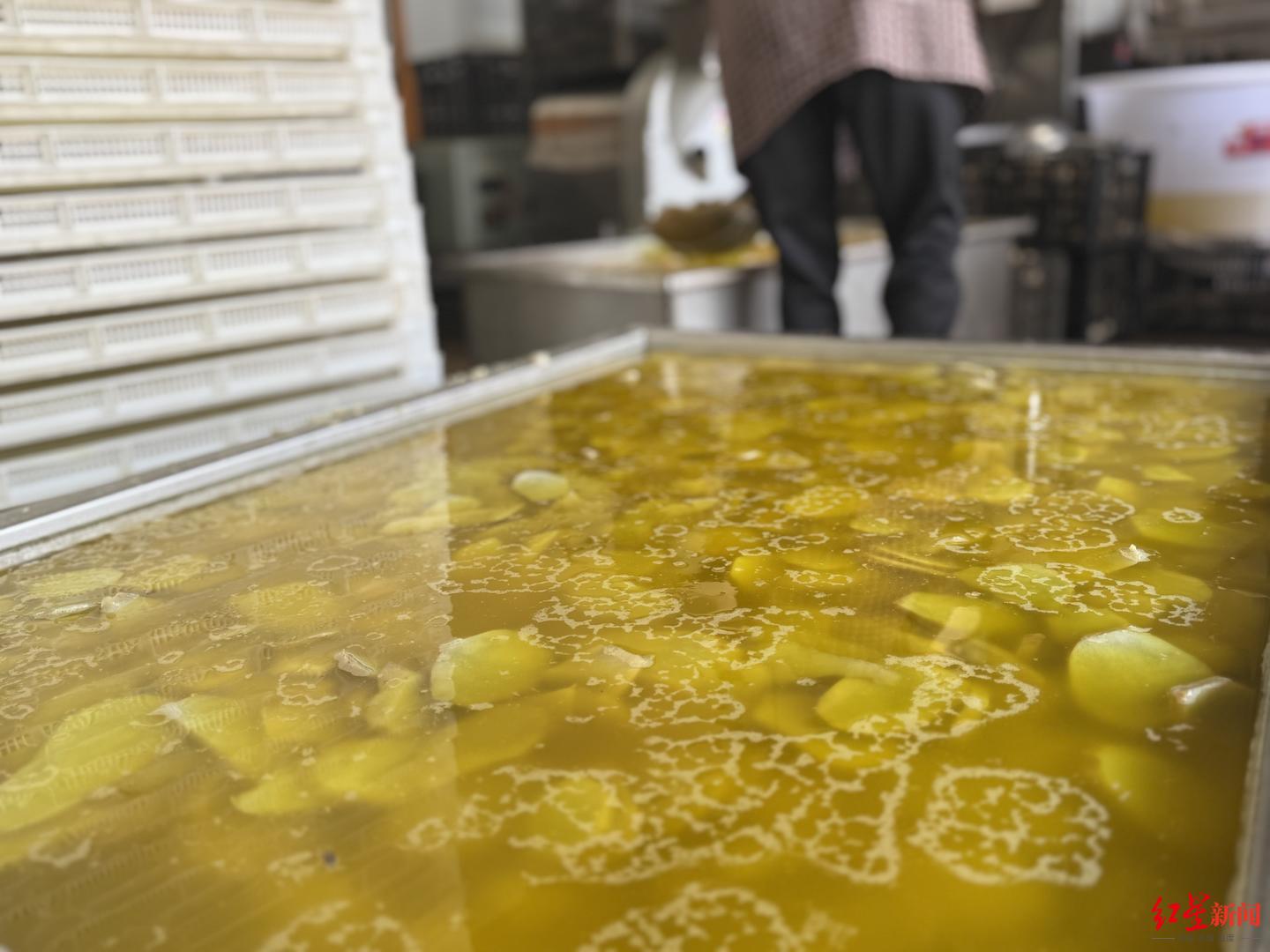 “大桶里加入亚硫酸钠,果子泡在其中一整夜,不仅保鲜还能漂白,泡后的色泽也能更接近天麻。”该工厂负责人介绍。