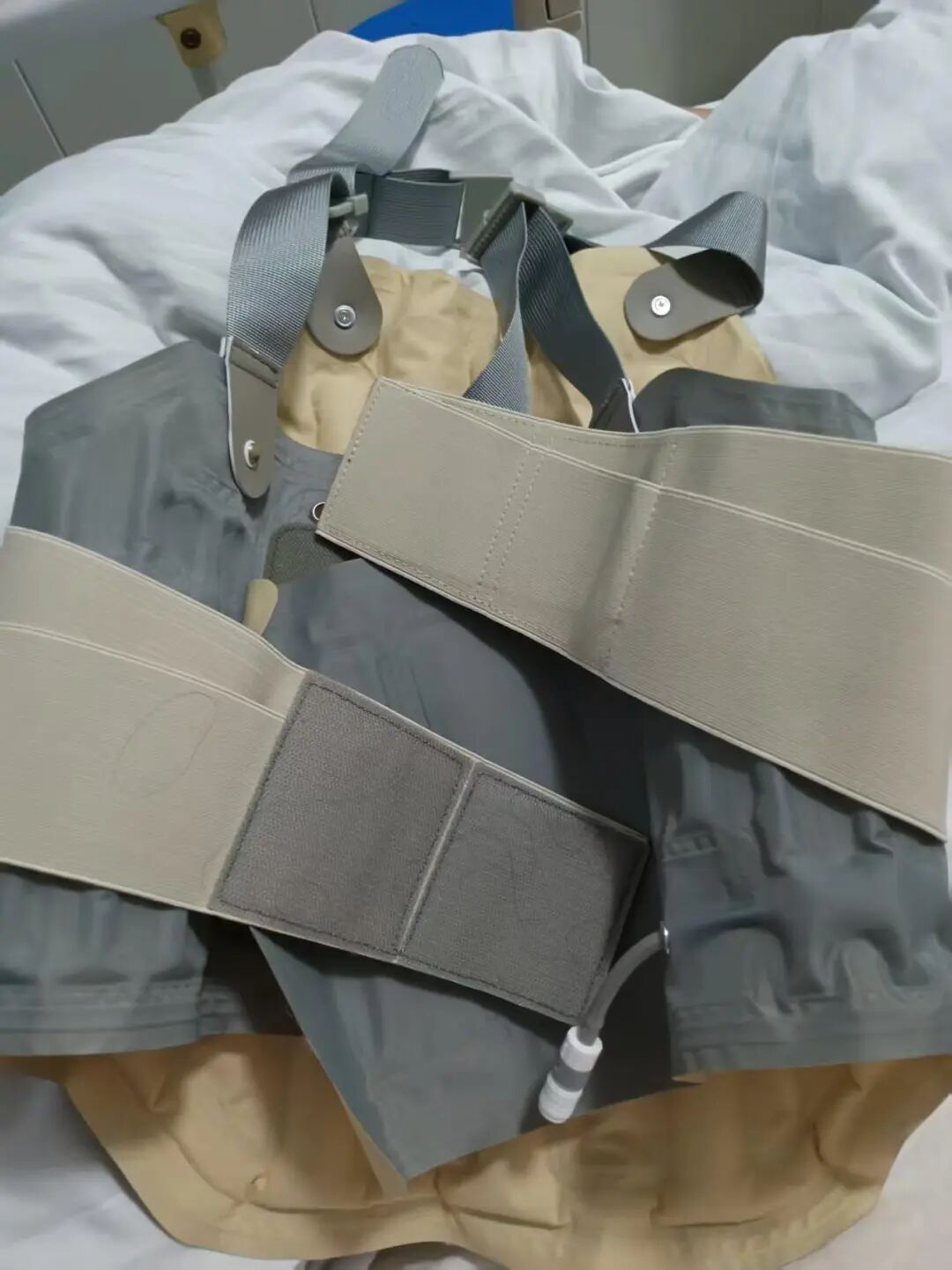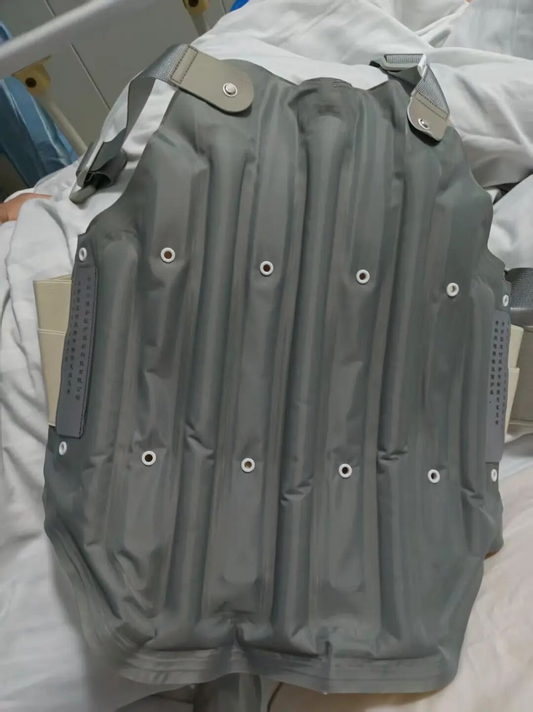 在薛先生母亲出院的那天,华商报大风新闻记者来到医院。深灰色外壳、里侧带着气囊的支具就穿在薛先生母亲身上。她手里抱着支具的包装盒。