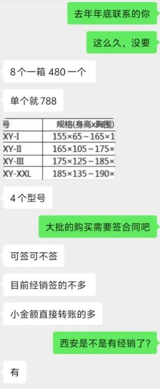 记者一再提出想与他见一面,实地看看产品。但对方回复,如果买得多,可以带记者去西安的工厂参观,如果买一件就算了。
