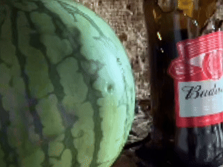测试中,从业人员分别使用三把玩具枪对西瓜和啤酒瓶进行射击。结果显示:三款玩具枪均能在近距离击破西瓜。
