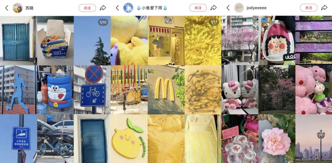除了city walk,近日在社交平台上也逐渐兴起新的玩法——color walk(色彩漫步)。人们在出门前选定一种颜色,走上街头寻找带有这种颜色的物品并记录下来,仿佛一场随机掉落任务的寻宝之旅。