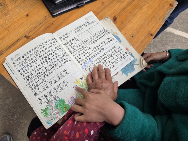 两天的采访让我渐渐明白:七本笔记的意义远不止于此。它是十六年陪伴最真实的注脚——她用最笨拙的方式,把自己变成孙女与这个普通又美丽世界之间的桥。十六年前,医生劝她放弃,她没有认命,带着孙女四处求医;医生说要去上学,她就成了教室里年纪最大的学生;医生说必须锻炼走路,她就用一根绳子系在孙女腰上,狠心看着她一步一步往上挪。