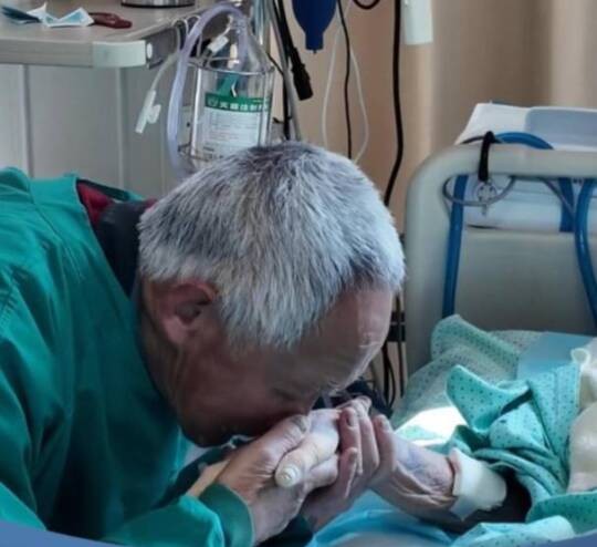 最后时刻,他泪流满面,紧紧地握着老伴的手,不愿松开,嘴里呢喃着向她做最后的道别。