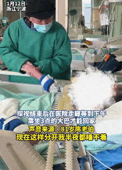 82岁的陈老伯从去年11月底开始,为了探视因脑梗并发症住院的老伴,每日清晨四点半起床,从舟山市金塘镇出发辗转奔波赴院探视,整整105天,从未间断。到13日为止,这场漫长的跨海探视带着遗憾告终,陈老伯与老伴含泪告别。
