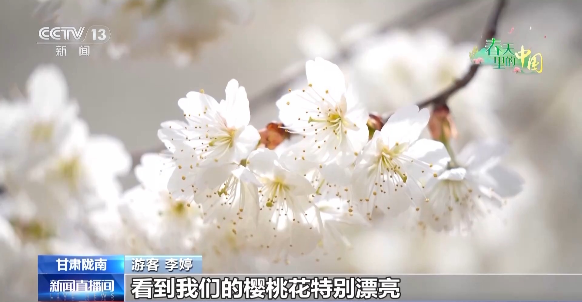 游客 李婷:今年武都的天气回暖比较早,走到樱桃园,看到樱桃花特别漂亮,感觉心情一下子都变得很好。