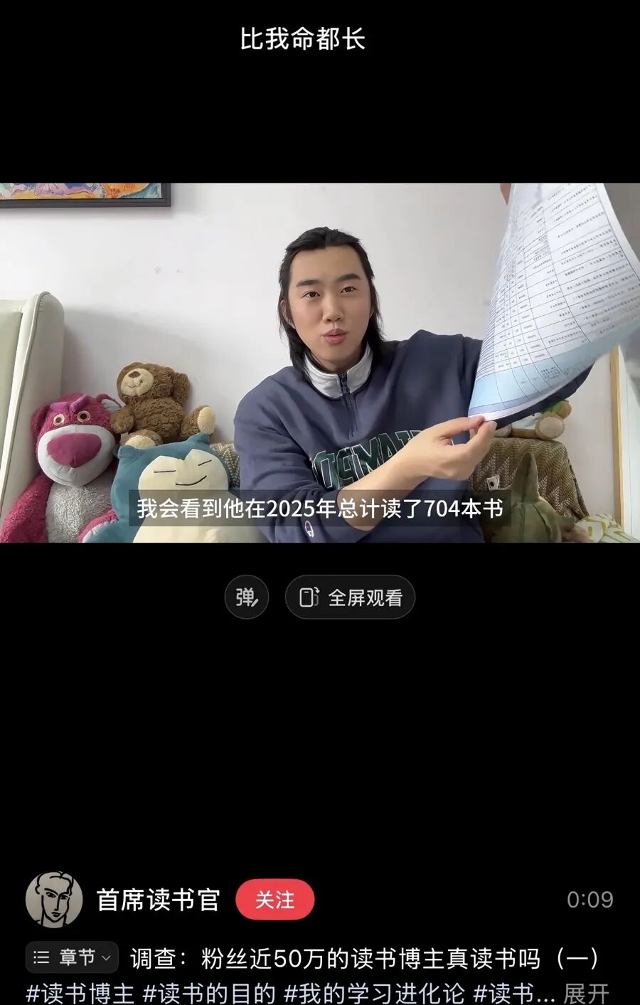 上观新闻消息,近日,博主“首席读书官”发出的一期视频火了。