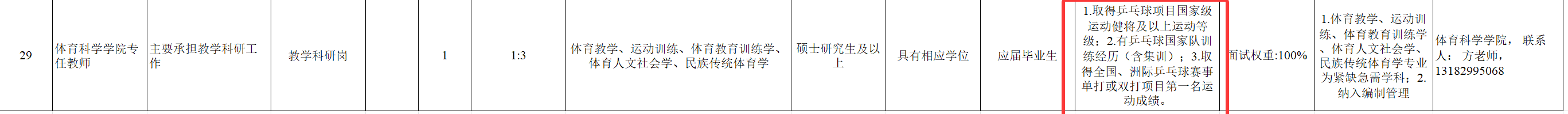 3月18日,大皖新闻记者拨打了招聘公告中体育科学学院联系人的电话,该工作人员表示,该学院缺乒乓球老师,应聘者需要同时满足上述三项资格条件,该岗位并不是为专人设专岗,需要至少有三位符合条件的应聘者报名才能开考,目前还在报名阶段。该工作人员未透露目前的报名情况。