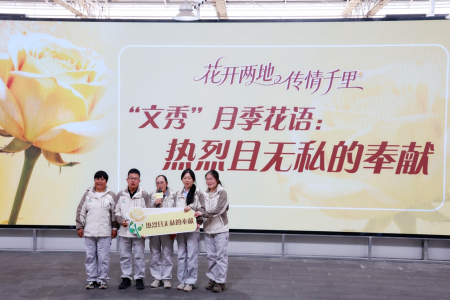 云南省农业科学院花卉研究所蔡艳飞团队发布“文秀”月季花语(3月18日摄)。新华网 赵普凡 摄