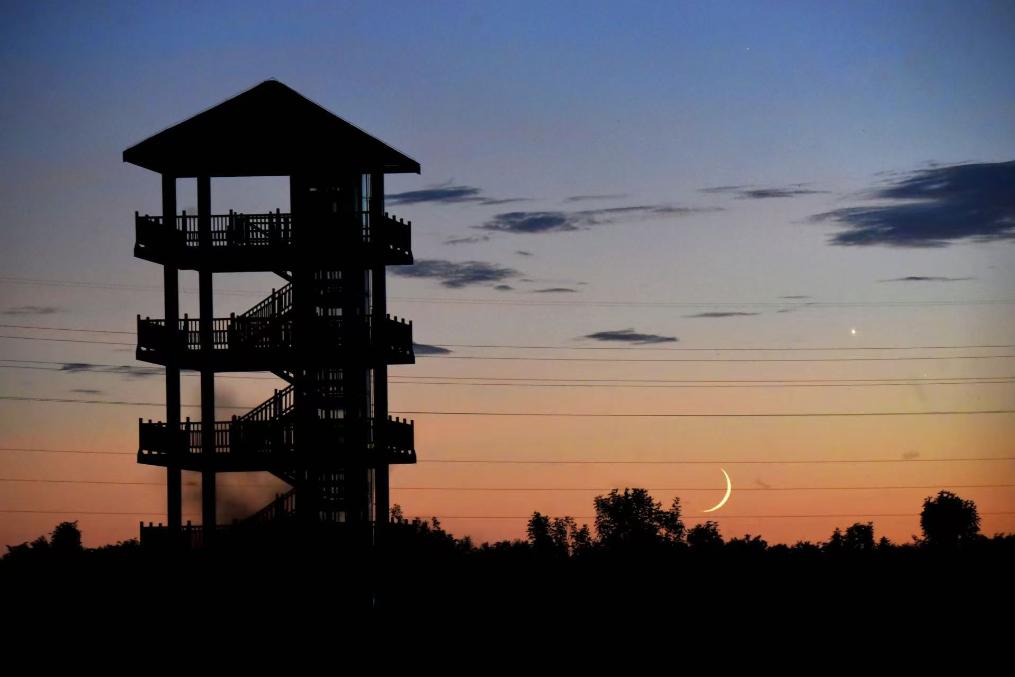 2024年9月5日,在天津市静海区团泊湖拍摄的“长庚伴月”。(杨婧摄)