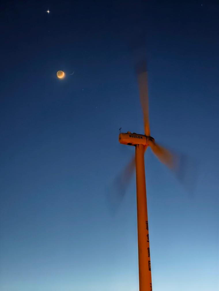 2025年1月3日,在山东省荣成市拍摄的“长庚伴月”。(钟奕摄)