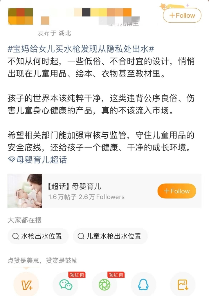 记者在多个社交平台上了解到,家长群体对这类低俗玩具的反应强烈。不少家长纷纷在评论区留言,直言“设计低俗”,并呼吁大家举报厂家,要求下架此类产品。同时,一些母婴育儿博主也为此发声,希望相关部门能够严查这类低俗儿童玩具,坚决守住儿童用品的安全底线,为孩子们营造一个健康、安全的成长环境。