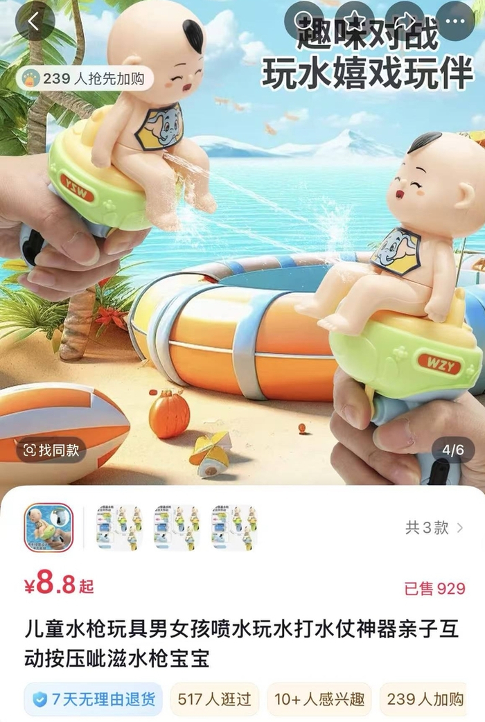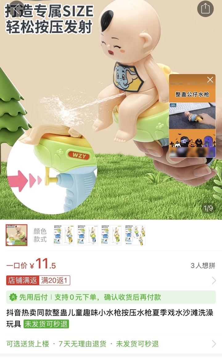 玩具水枪“恶趣味”,商家称适用年龄“3岁及3岁以上”