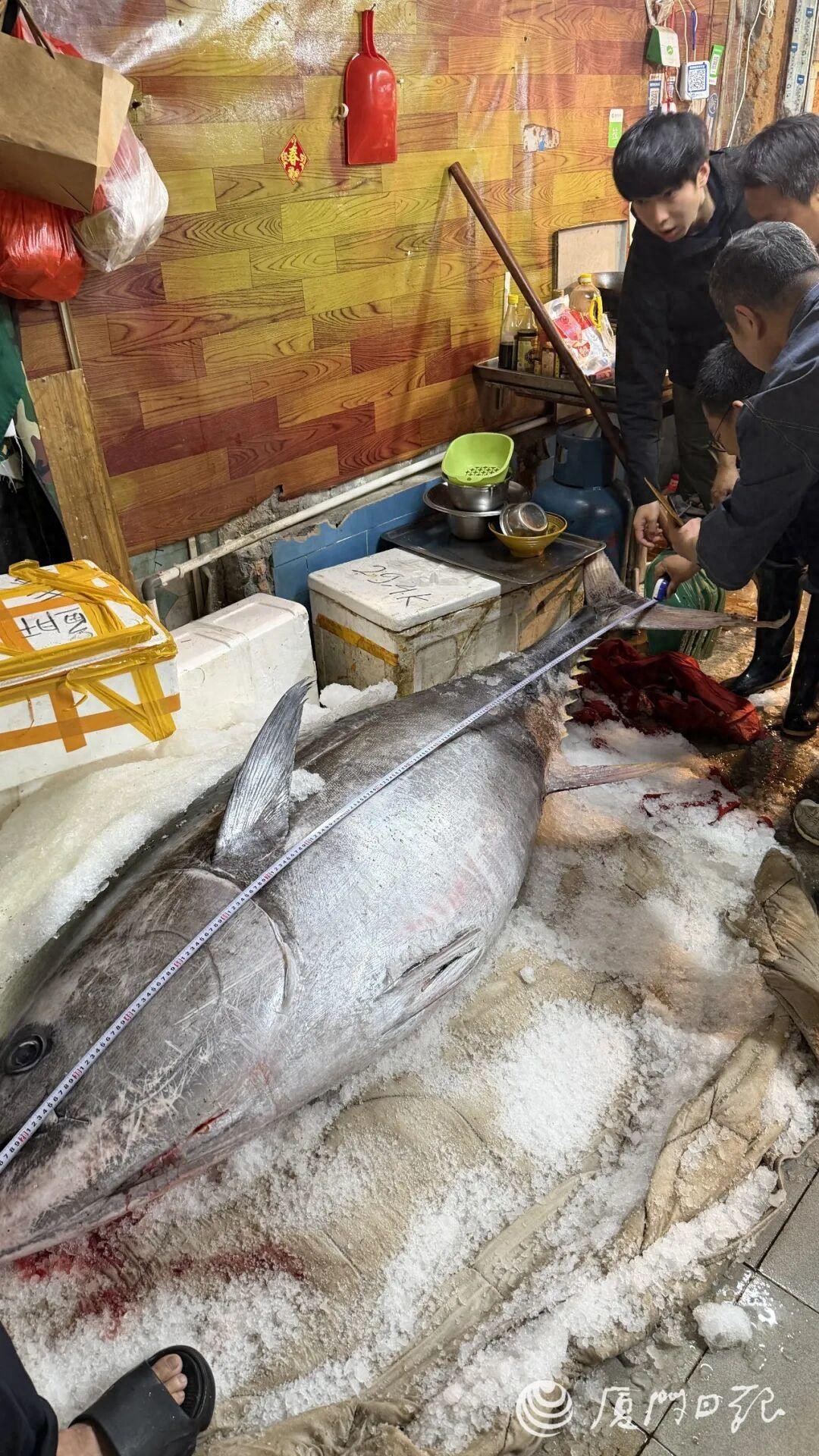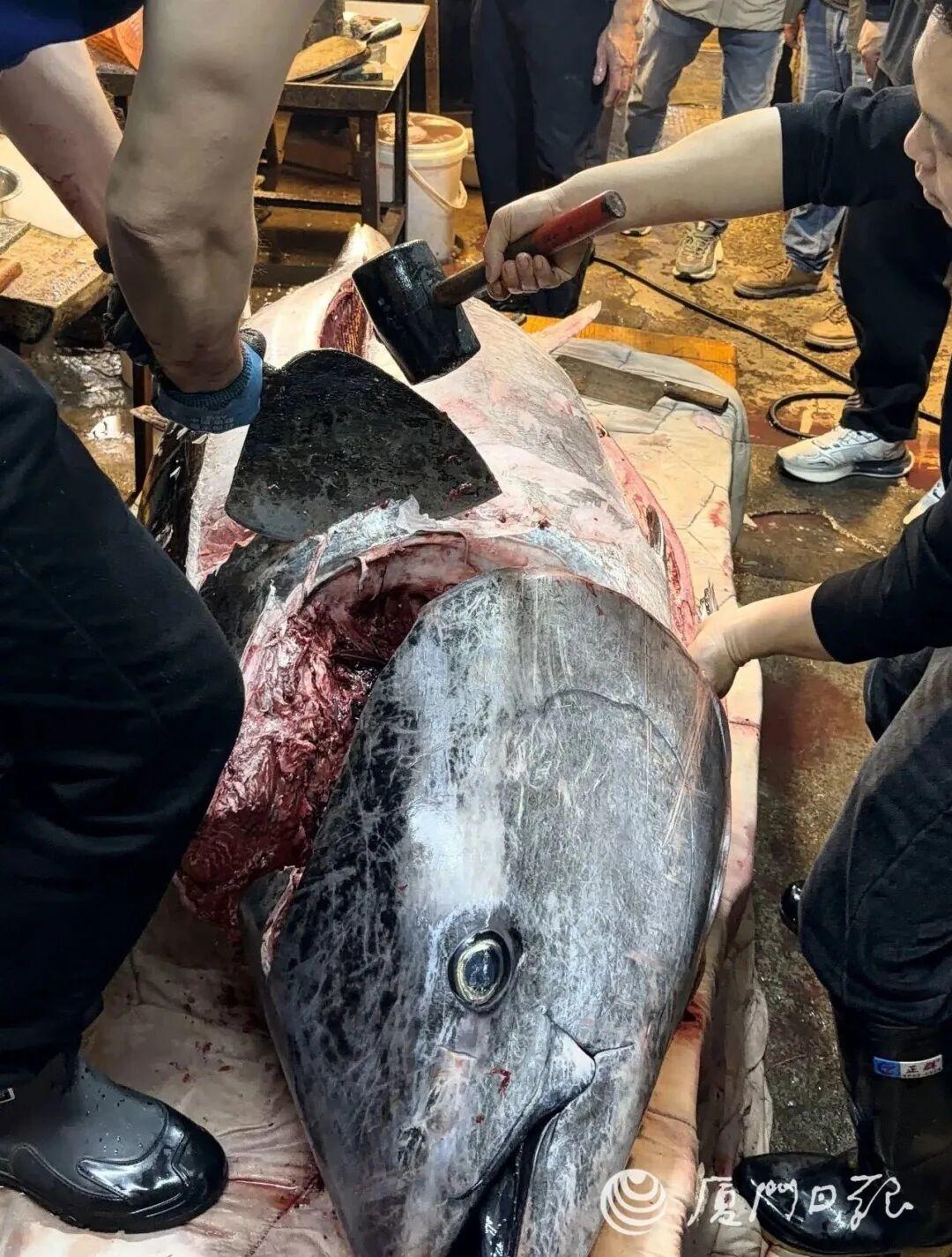 据介绍,这应该是目前在八市出现的最大的蓝鳍金枪鱼。