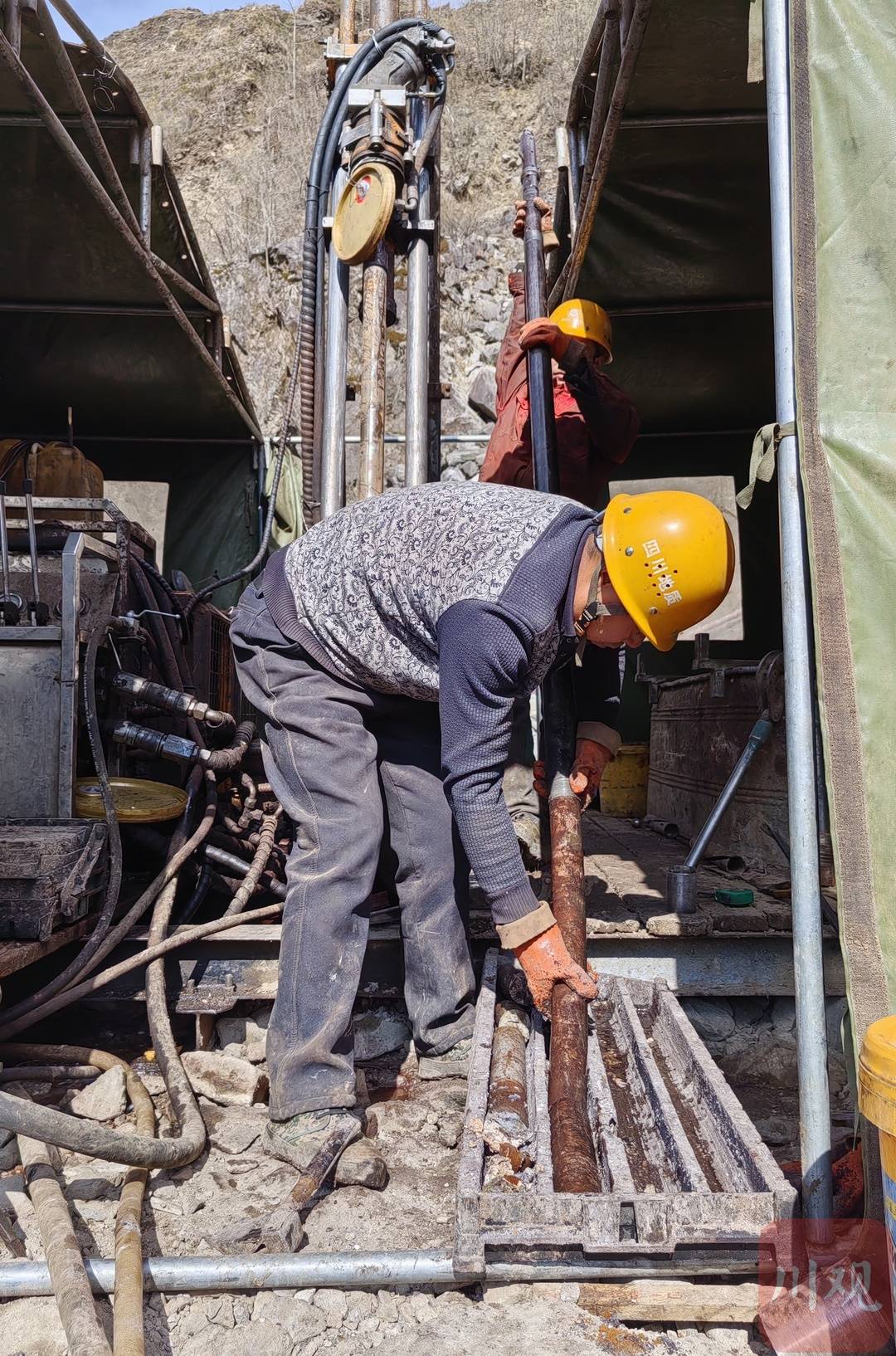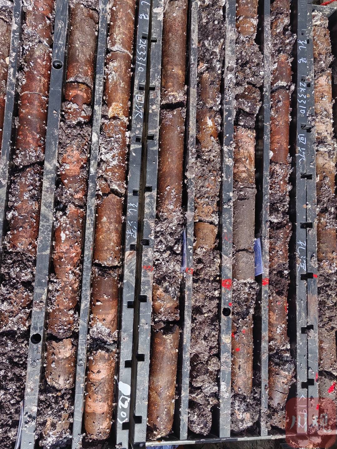 2023年底,海拔2800米之上的矿区,一台台高大钻机耸立,长长的钻杆穿越层层地层,向着千米深部持续延伸,一节节取出带着地层余温的岩芯,表面隐约闪烁着矿物特有的光泽。这些岩芯取样是判断资源储量与品位的重要依据。