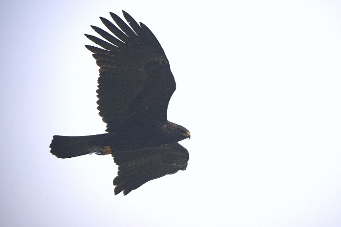 据了解,林雕是鹰形目鹰科的中大型猛禽,也是巢湖周边体型较大的一种雕类。其翼展164–178厘米,通体黑褐色,特点是飞行时双翼呈长方形,翼指明显。常在林缘或开阔地带盘旋飞翔,俯冲捕捉鼠类、两爬、雉鸡及小型鸟类。