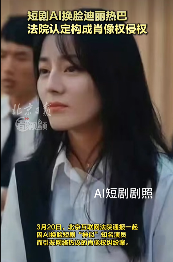 3月20日,北京互联网法院通报一起因AI换脸短剧“神似”知名演员而引发网络热议的肖像权纠纷案。法院认定,短剧制作方擅自使用深度合成技术生成与某演员高度相似的形象,侵害其肖像权;短剧播出方未尽合理审查义务,同样承担相应责任。