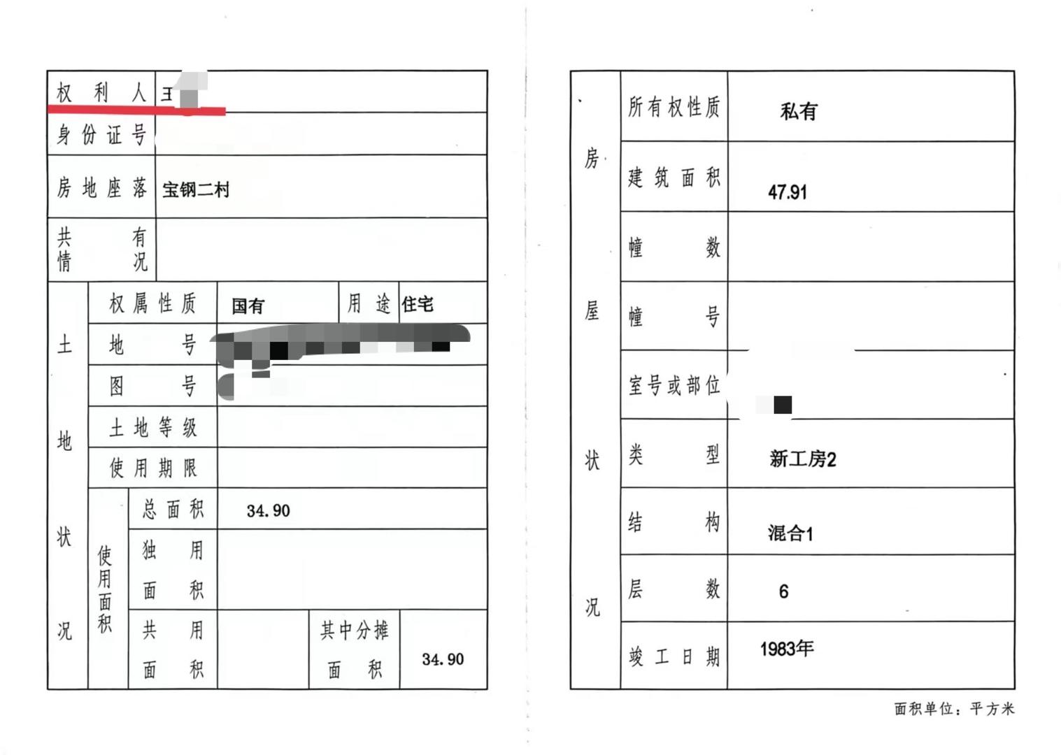 王老伯说:“我从年轻就在宝钢二村,几十年了,所以不想离开这个地方。我想回,现在回不去。”房产证显示权利人为王老伯一个人。这也是他名下的唯一住房。