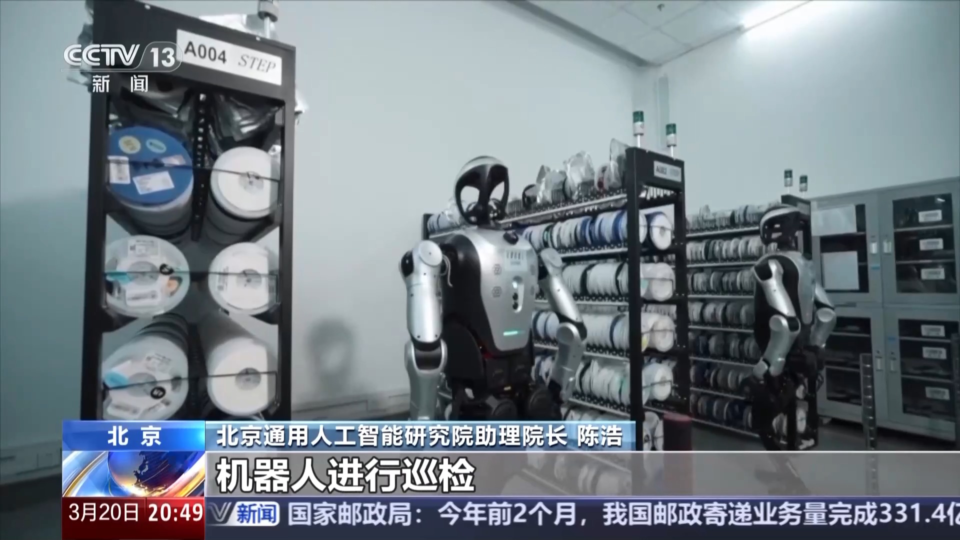北京通用人工智能研究院助理院长 陈浩:“她”可以利用我们遍布空间之中的摄像头,比如说园区里或者是楼宇里,甚至是野外的摄像头,能够自动驱动机器狗、机器人进行巡检,能够实时去识别各种异常状况,并且进行处置,可以把家庭里面的摄像头接给“通通”,使得“她”成为一个智能家居的总体的大脑。