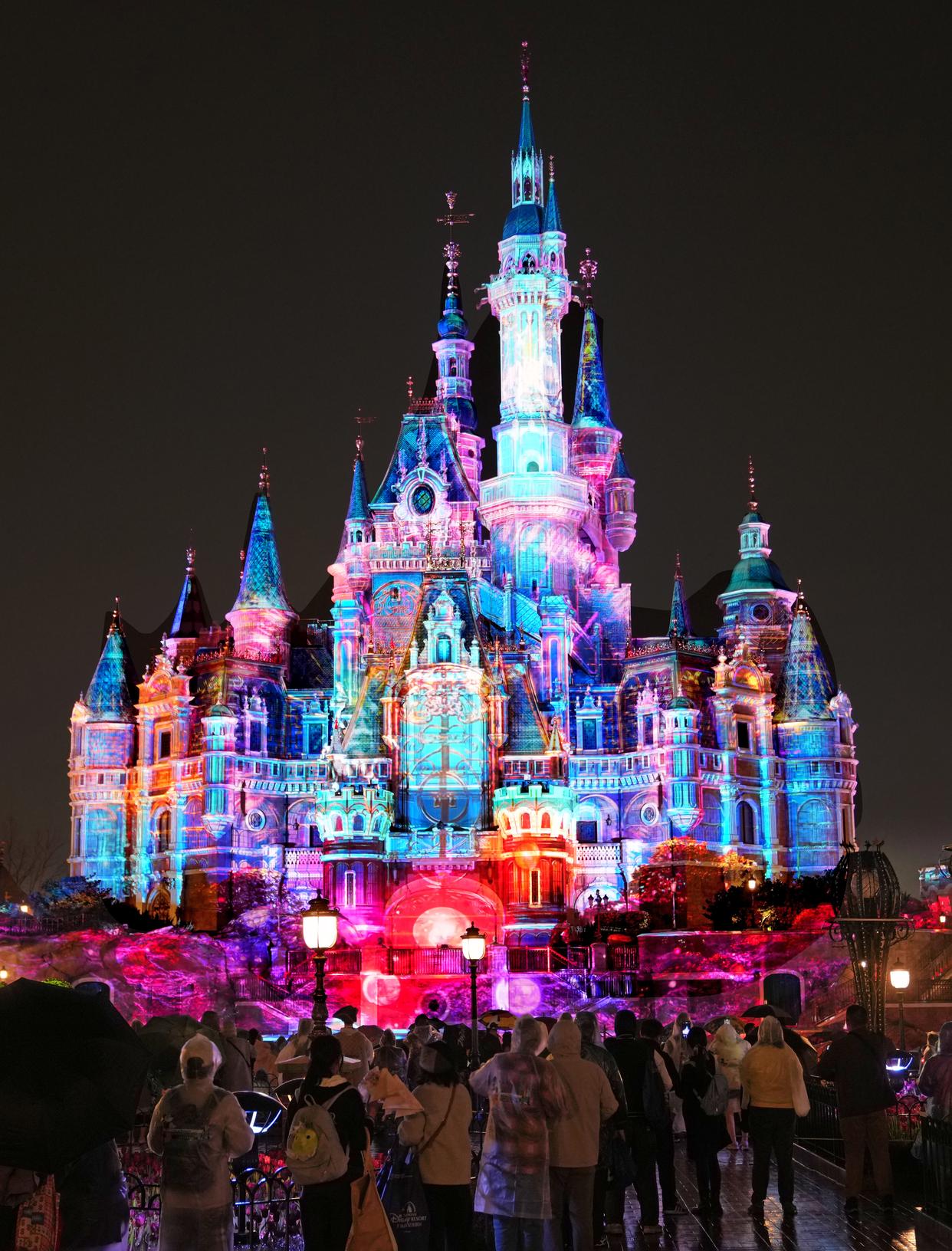 3月20日晚,游客在上海迪士尼乐园欣赏夜间演出。新华社记者 刘颖 摄
