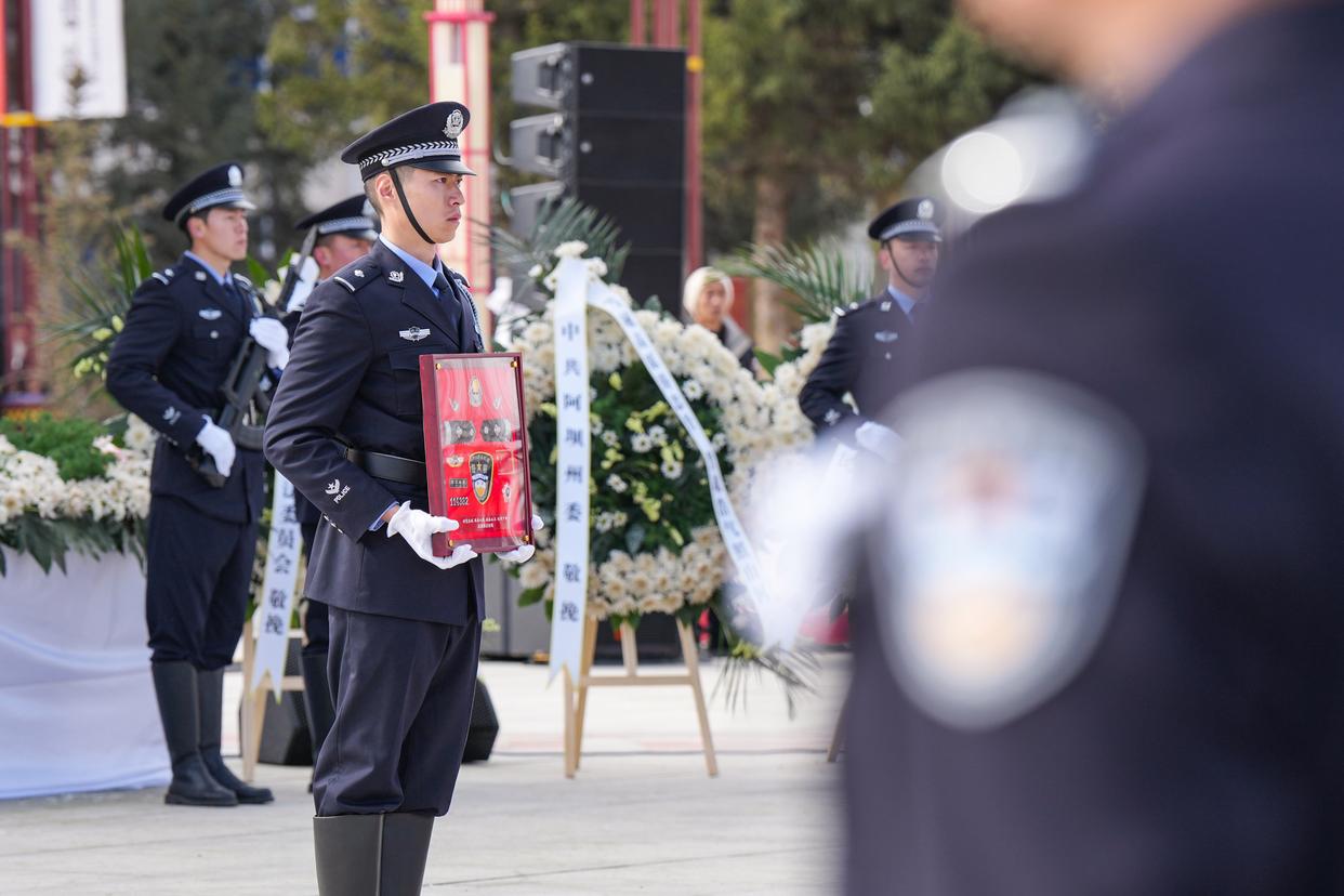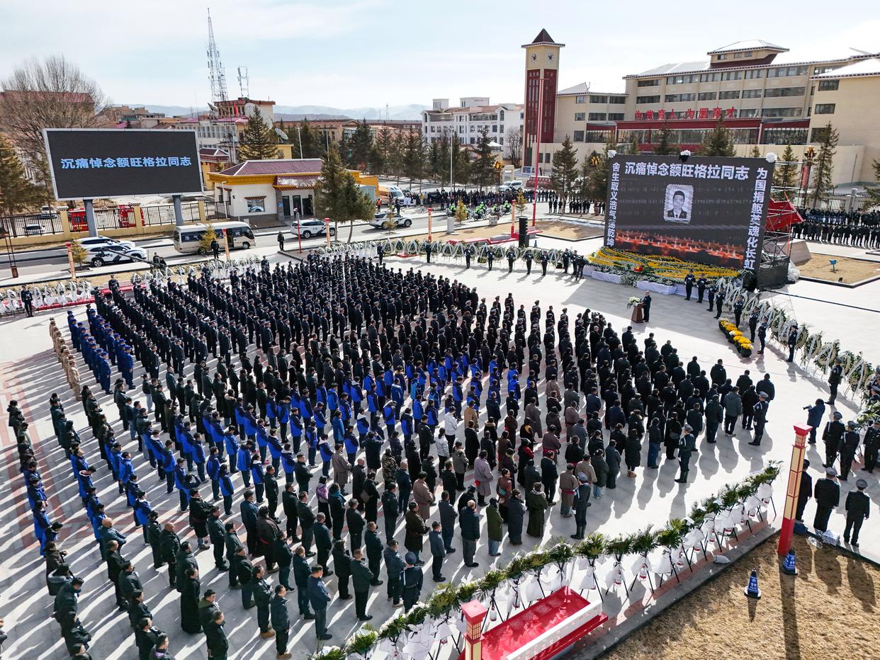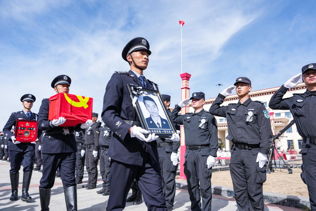 3月20日,额旺格拉同志的警号在追悼会上宣布封存。新华社记者 王曦 摄